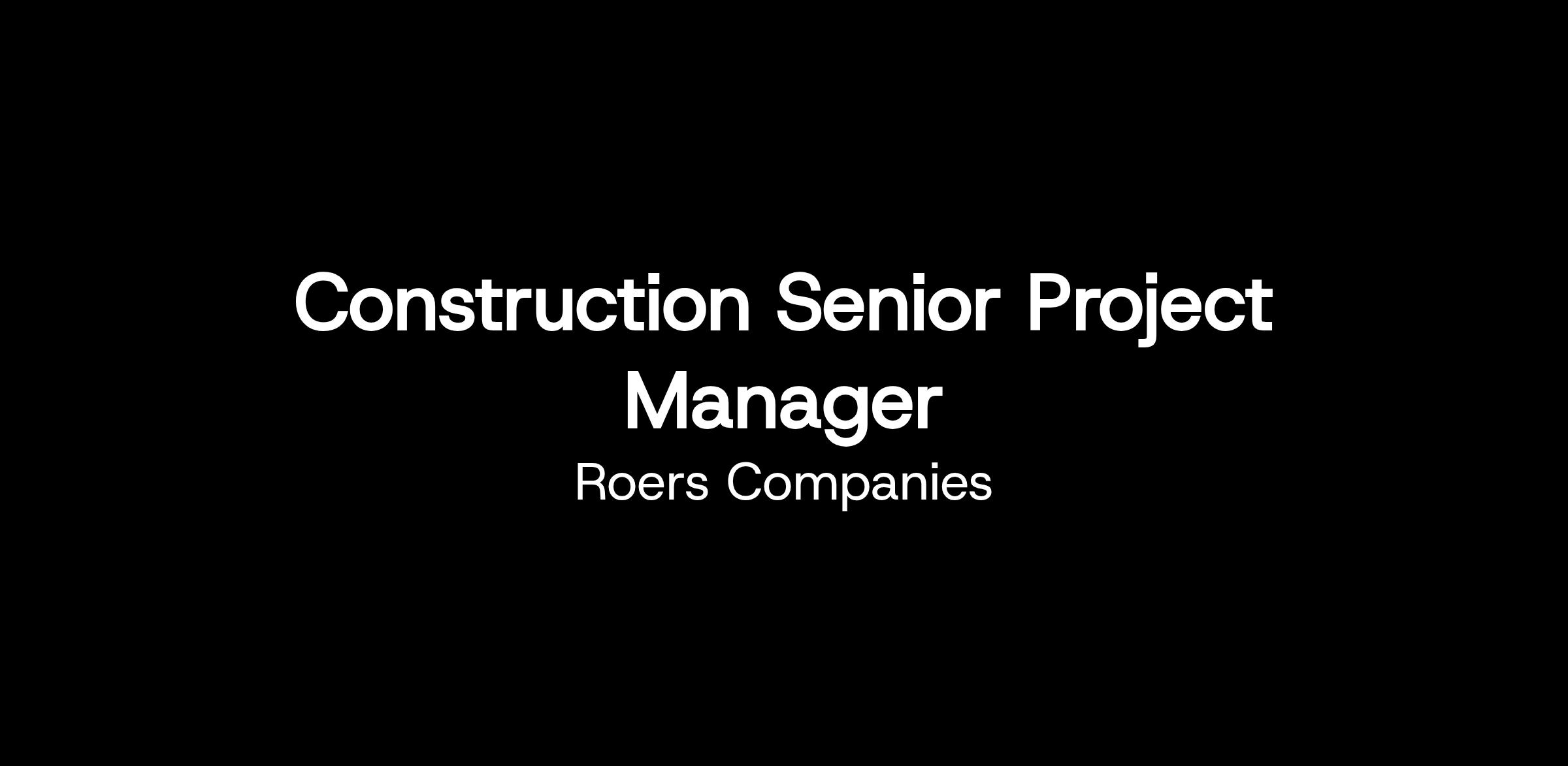 Roers Companies is seeking an energetic, dedicated Construction Senior Project Manager to join our team in Plymouth, MN.