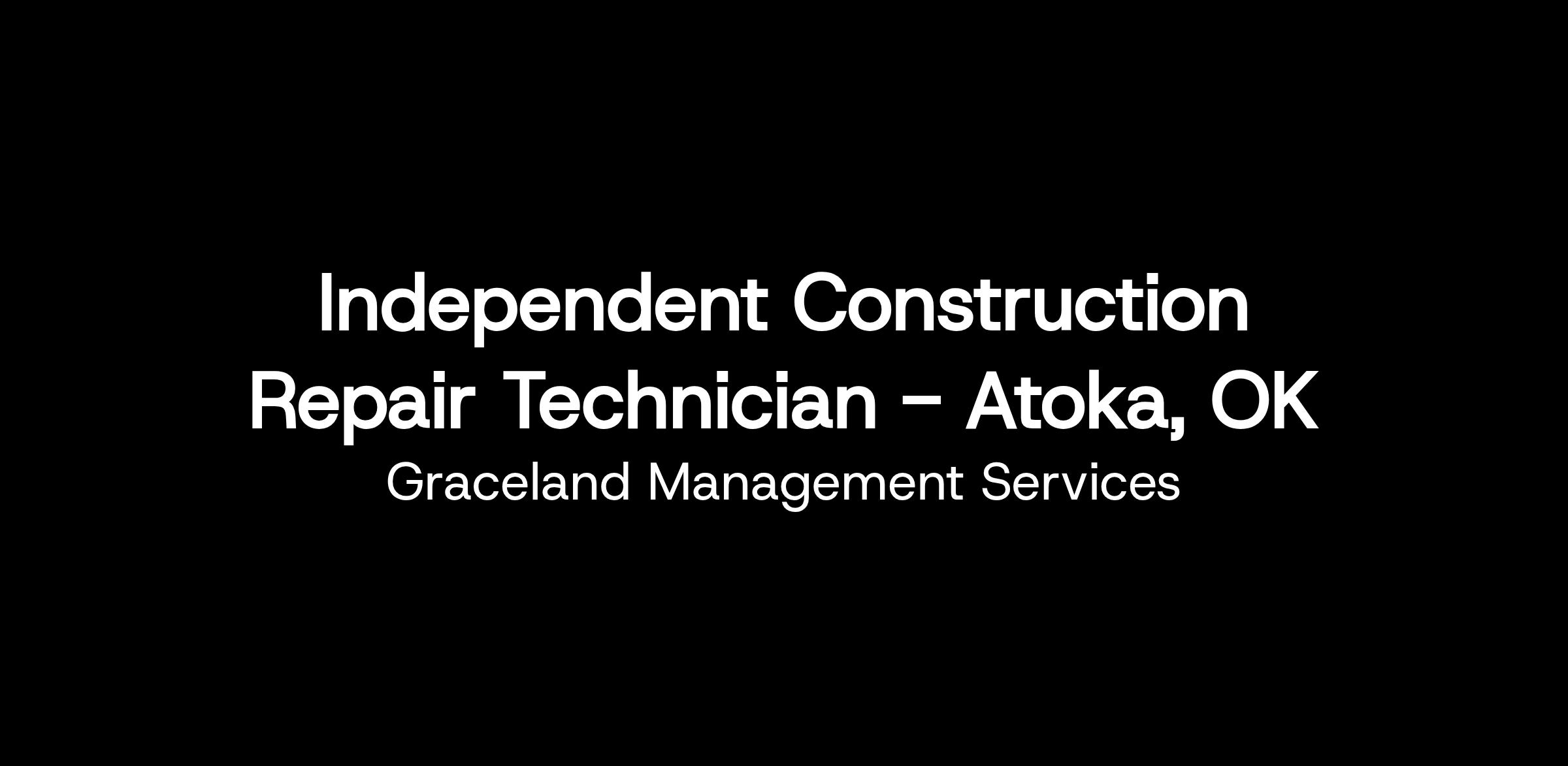 We are looking for a Repair Technician to service Graceland Portable Building's customers in and around the Atoka area. This candidate will be responsible for visiting our customer's homes to perform repair work on our quality barns, cabins, garages and sheds. The candidate will be an independent contractor on behalf of Graceland Portable Buildings, LLC and must provide their own transportation and tools. If you are interested in working with a top notch team at a growing company, this is the job for YOU!