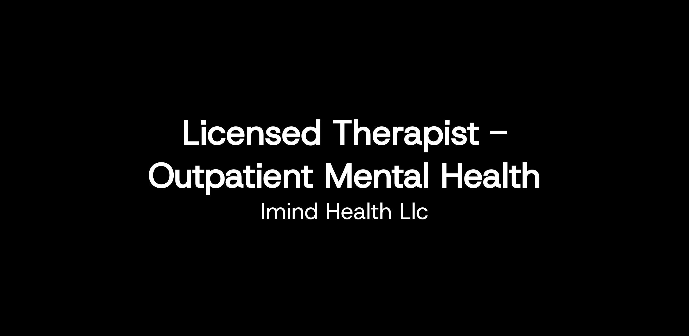 Licensed Therapist – Outpatient Mental Health
