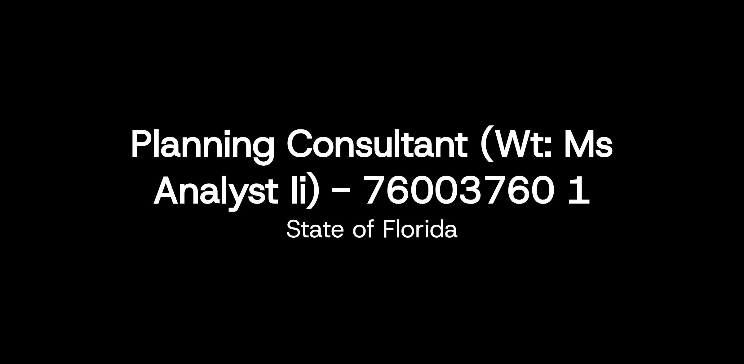 Working Title: PLANNING CONSULTANT (WT: MS ANALYST II) - 76003760 1