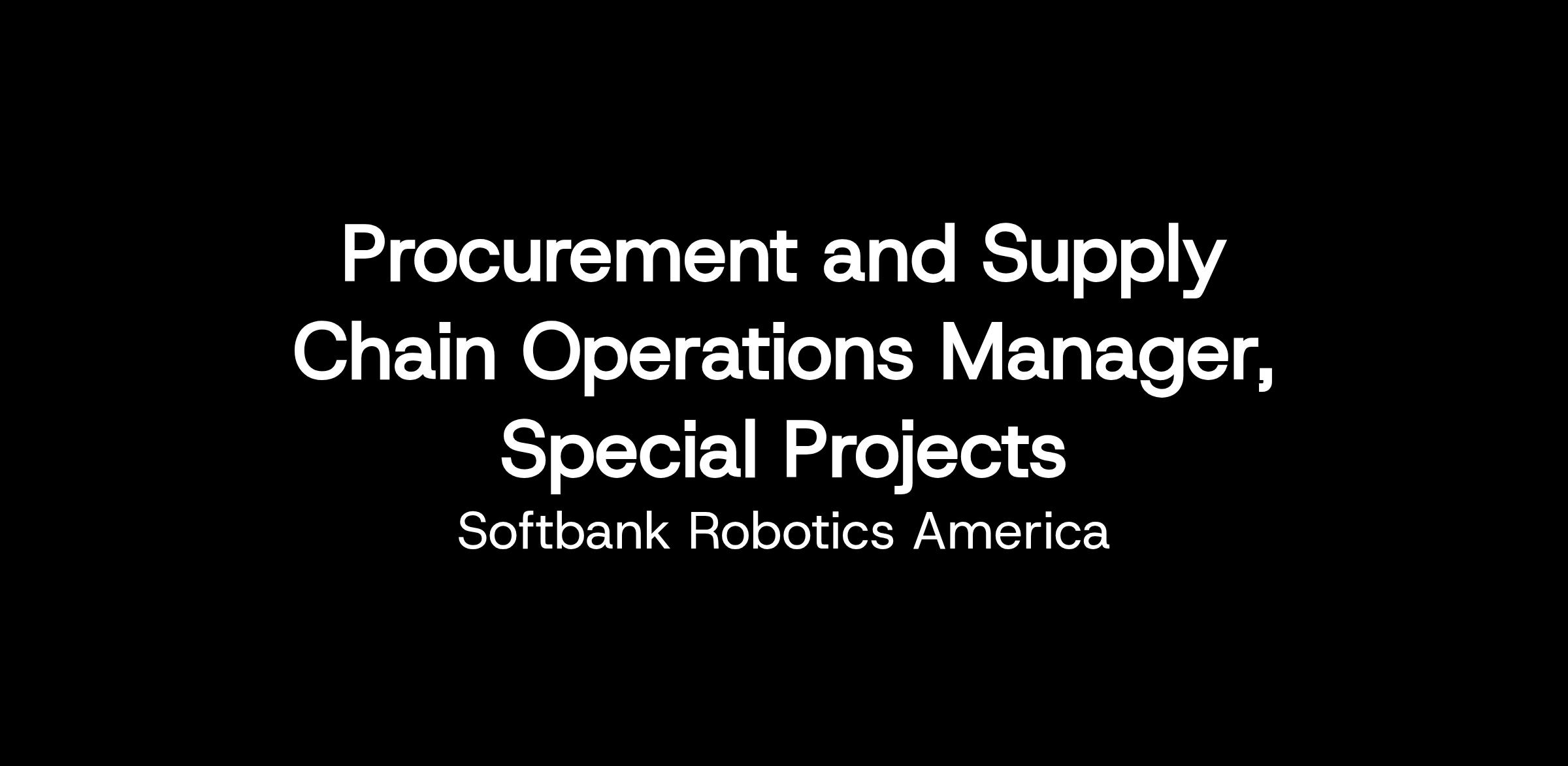 SoftBank Robotics America currently is orchestrating an exciting construction automation special projects initiative and seeking a Procurement & Supply Chain Operations Manager to join the team. This role will play a critical part in rapidly scaling and managing the initiative to deliver strategic outcomes to global stakeholders.