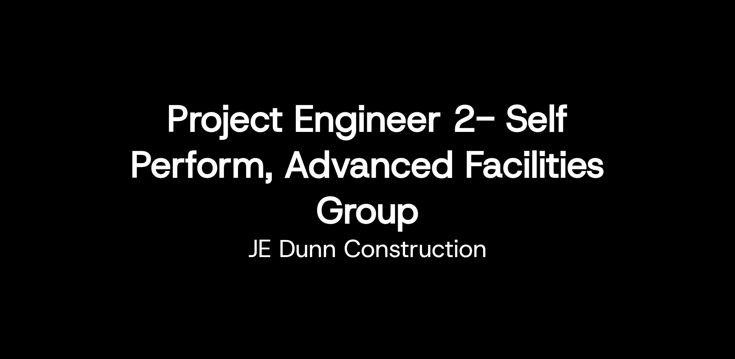 The Project Engineer 2 will complete and support routine construction and field execution responsibilities for construction projects utilizing construction fundamentals and company best practice standards, processes, resources and tools. This position will be responsible for participating in many facets of the construction process, such as general construction management, punch lists and executing self-perform work, in order to understand the building process and how JE Dunn executes projects. All activities will be performed in support of the strategy, vision and values of JE Dunn.